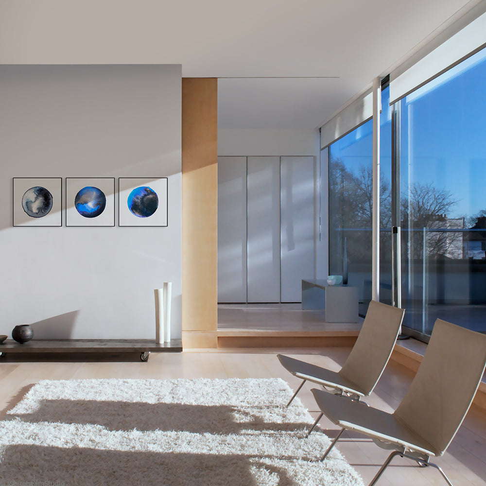 Display your museum quality print individually - or in multiples where colors appear to flow between the prints, their circular form forever on the point of movement.