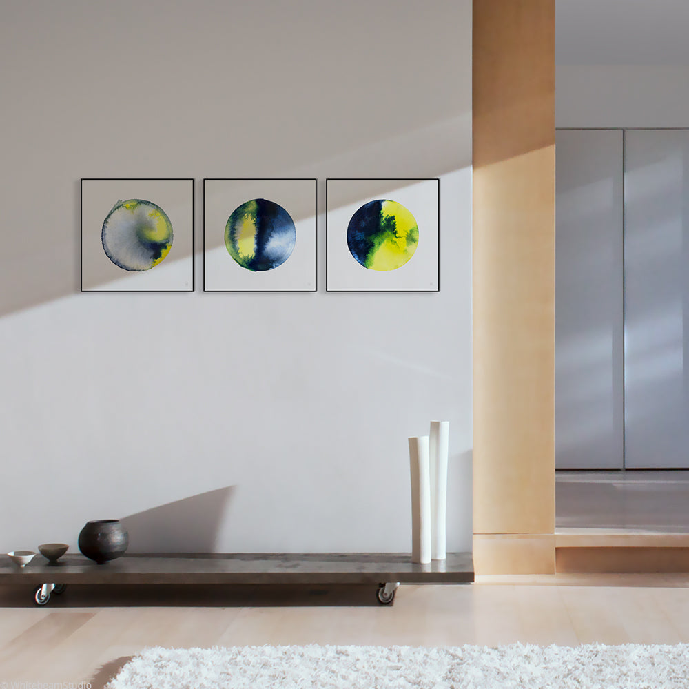 Display your museum quality print individually - or in multiples where colors appear to flow between the prints, their circular form forever on the point of movement.